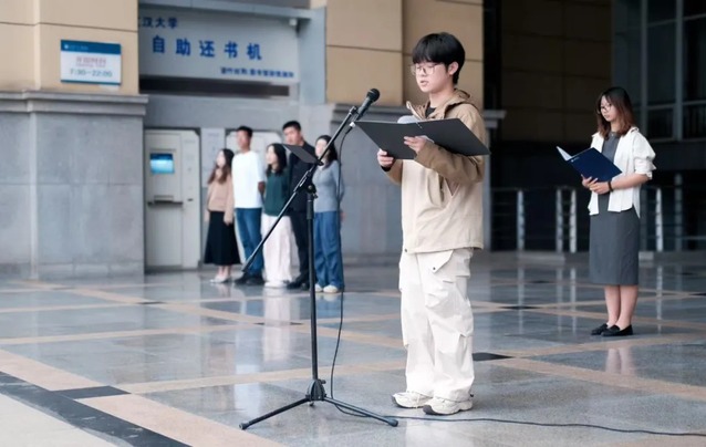 视觉传达设计专业大三学生陈嘉楠分享了她“知行合一”的成长历程。从成功申报校级重点科研项目起步,她与团队深入南漳县,寻访年逾古稀的非遗传承人。面对崎岖的山路和老人最初的沉默,她们以诚意和坚持打动传承人,记录下濒临失传的技艺。她用亲身经历诠释了何为“笃行”——唯有走出课堂、走向田野,才能真正理解文化之根、设计之魂。她呼吁同学们胸怀“国之大者”,以专业能力守护文化根脉,增强国家文化软实力,在服务国家战略中实现青春价值。