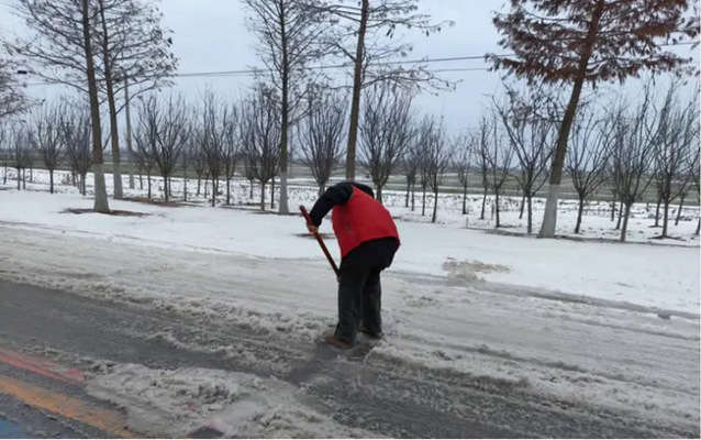 表演211班靳添在甘肃天水国道清扫积雪