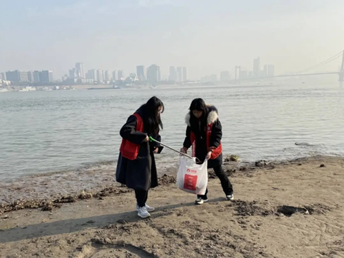 设计242班尹静雯和刘馨怡 在武汉市江滩参与垃圾清理活动