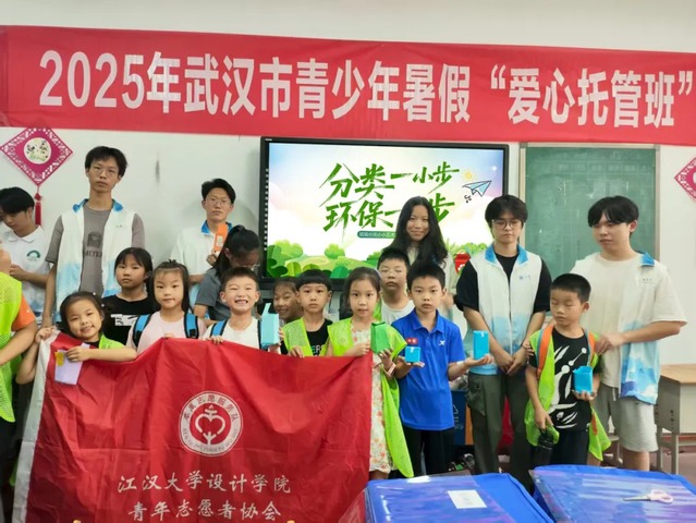 为践行绿色发展理念,响应武汉市青年i分类行动号召,江汉大学设计学院志愿服务队于7月28日走进碧湖社区,开展垃圾分类小小艺术家主题实践活动。活动通过寓教于乐的艺术手工形式,将环保教育与美育实践相结合,让孩子们在创意体验中掌握垃圾分类知识。