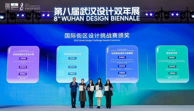 国际街区设计挑战赛是联合国教科文组织设计之都国际专业赛事,2025届赛事以“社区科技未来”为主题,吸引了全球25所高校、300余名学生组成的48支团队参与。赛事采用极具挑战性的48小时限时设计模式,全面考验参赛者的创新思维、团队协作与实战能力。经过全球30位权威专家的严格评审,最终评选出四个优胜奖项。江汉大学设计学院团队在与武汉大学、墨西哥人文大学、美国劳伦斯理工大学等国际强劲对手的激烈竞争中脱颖而出,其设计成果获得了评审团的高度认可。