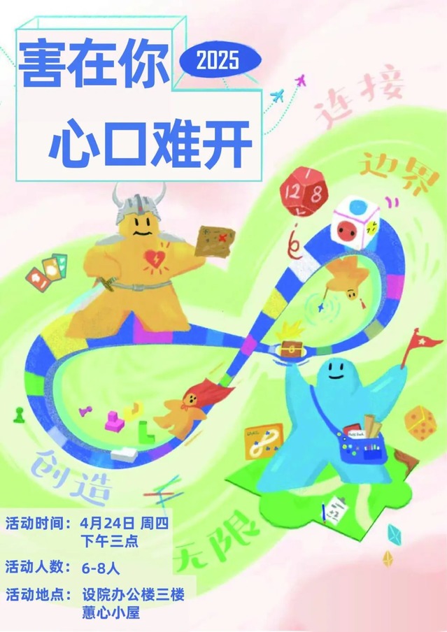 为深化大学生心理健康教育工作,有效提升学生人际交往能力与心理调适水平,设计学院依托蕙心小屋心理工作站,于2025年上半年开展了以人际交往,减压赋能为主题的蕙心星期四系列心理健康活动。本次系列活动共计开展11场,通过多元化的形式设计,以沉浸式体验引导学生深度参与。活动累计吸引超500人次学生参与,成功构建起集情感共鸣、社交实践、压力疏解功能于一体的心理健康交流平台,切实为设计学院学生的心理健康发展赋能助力。