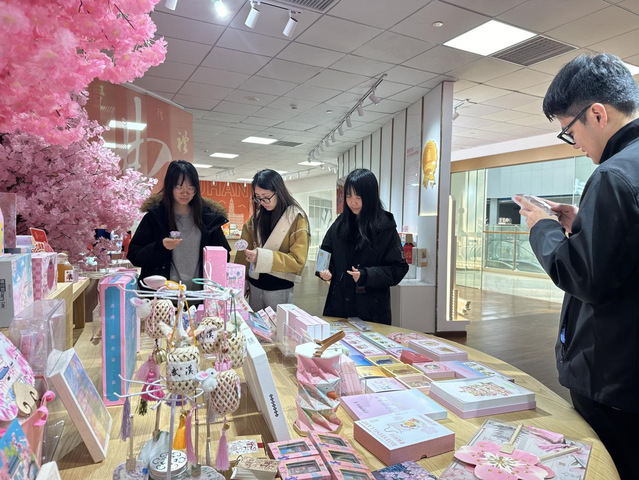 在武汉礼物文创展厅,上百件凝聚江城文化基因的创意精品构成了一场视觉盛宴。从黄鹤楼元素的生活美学器物,到东湖生态意象的文创衍生品,再到非遗技艺与现代设计碰撞的潮玩手作,学生们在驻足品鉴中直观感受文化IP+创意转化的多元路径。武汉泛江文旅产业有限公司副总经理张圣凯介绍,展厅作为武汉文旅商品研发的创意孵化器,年均接待设计团队超200批次,累计孵化市场转化率超100%的爆款产品,为青年设计师提供了宝贵的市场验证平台。