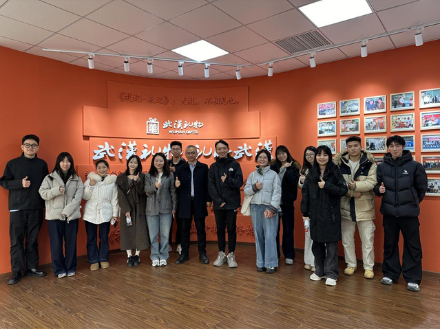 为深化产教融合、推动文创人才培养模式创新,江汉大学设计学院2024级研究生《文创创意与传播研究》课程近日走出传统教室,以行走的课堂形式走进武汉文旅产业一线。在魏坤教授带领下,师生团队来到武汉礼物文旅产业有限公司暨武汉市旅游协会旅游商品分会开展沉浸式实践教学,与行业领军者共探文创设计前沿命题,为培养兼具艺术创造力与市场洞察力的复合型人才注入新动能。
