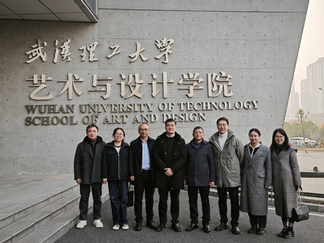 随后,考察团队前往武汉理工大学艺术与设计学院,与视传系主任方卫等师生围绕专业建设展开深度研讨。该校视传专业依托学校船舶、汽车、材料等优势工科,确立“学科交叉+特色服务”的差异化发展路径,将专业教学与国家战略、行业需求紧密绑定,其学生参与的车载UI设计已成功落地实车;同时坚持“文化与技术双驱”,通过非遗中心推进传统文化现代转化,将非遗技艺融入课程教学与课题研究,并联合人工智能系开设智能科技通识课,分认知(32学时)、实操(48学时)两阶段系统培养学生AI应用能力。