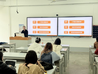 胡凯老师结合16年考研培训行业经验与高校就业指导工作积累,从27考研最新大数据切入,系统解读了考研报录比趋势、学历与就业薪资关联、专硕招生发展现状等行业形势。他围绕院校与专业选择核心要点,详细分析了武汉地区多所高校设计类专业的考研考情、复录比与录取规则,同时梳理了考研公共课全年备考规划与提分策略,为在场学子搭建起科学系统的考研备考框架。