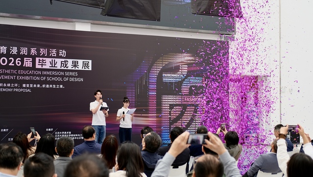 教师代表与优秀毕业生代表先后发言,感恩学校悉心培育,表达对设计事业的赤诚热爱,承诺将坚守匠心、勇于创新、服务社会、不负时代,把个人理想融入国家发展大局,把专业所长用于地方建设实践。与会领导为视觉传达设计、服装与服饰设计、表演、产品设计、环境设计、国际班、实验班优秀毕业作品获奖者颁奖,充分肯定毕业生在文化传承、数字创新、服务地方、可持续设计等方面取得的丰硕成果。